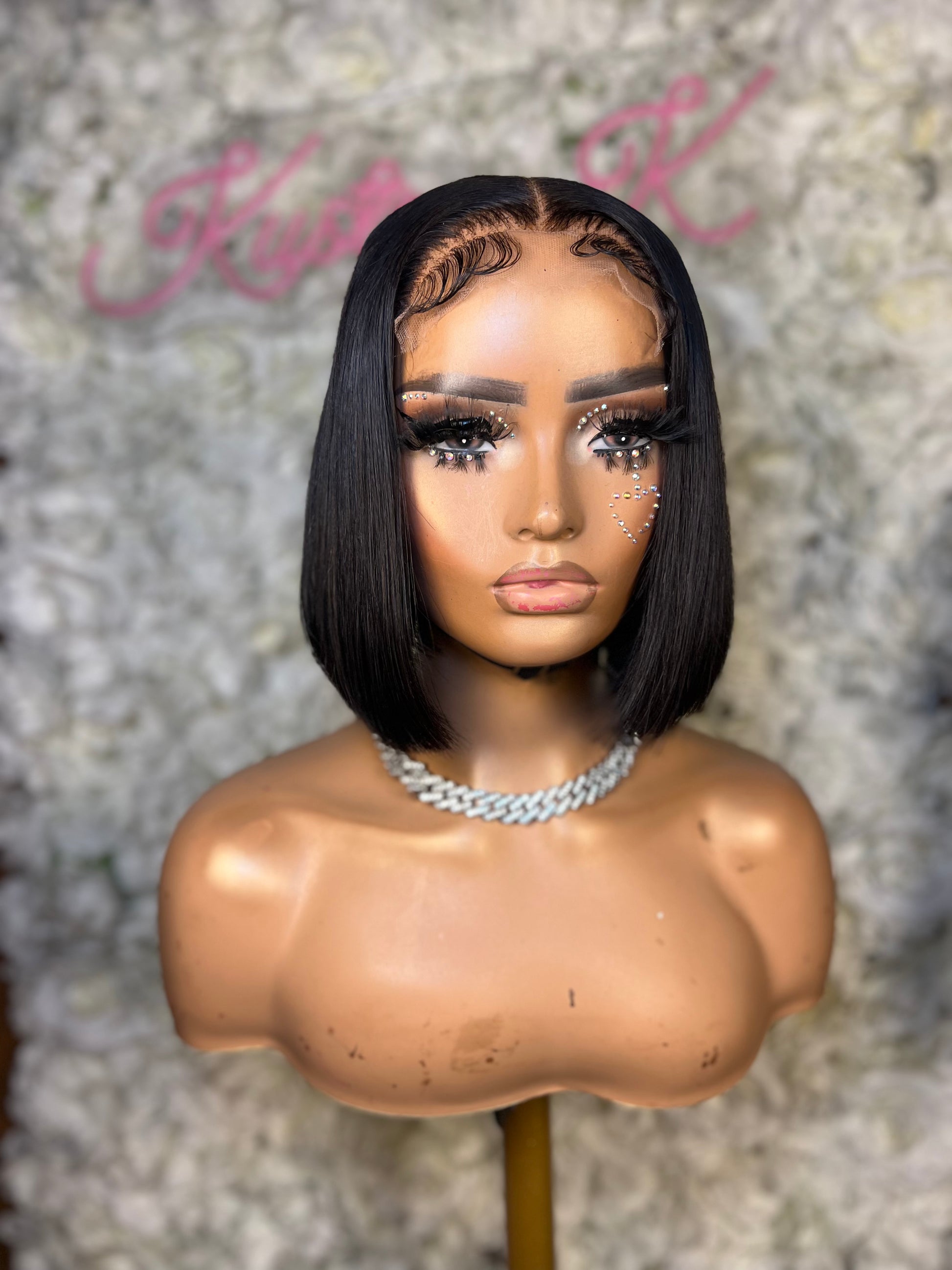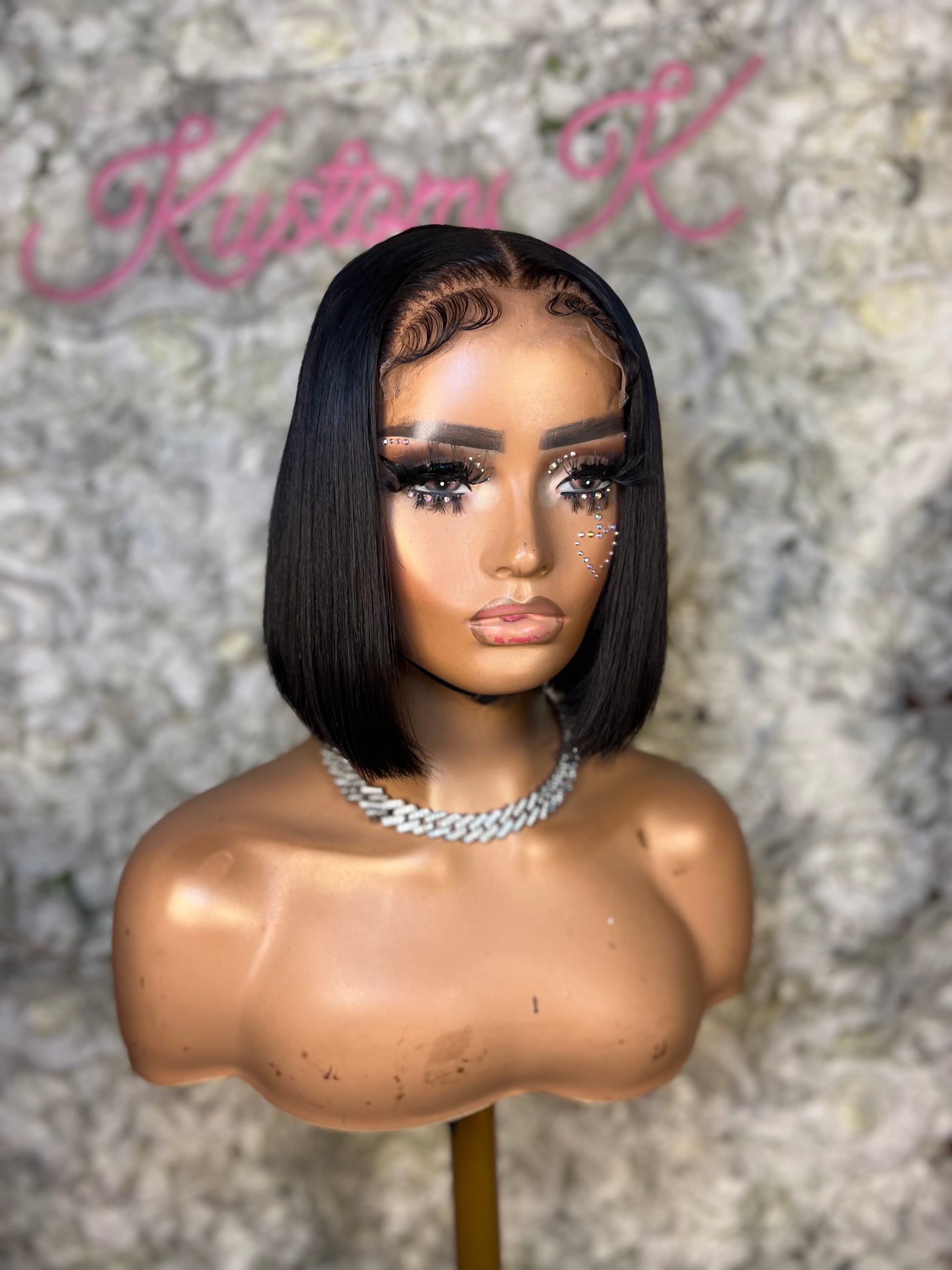Fully customized with plucked hair line and bleached knots. Bobbie has been styled in a middle part with baby hair. Elastic band added for glueless installs.