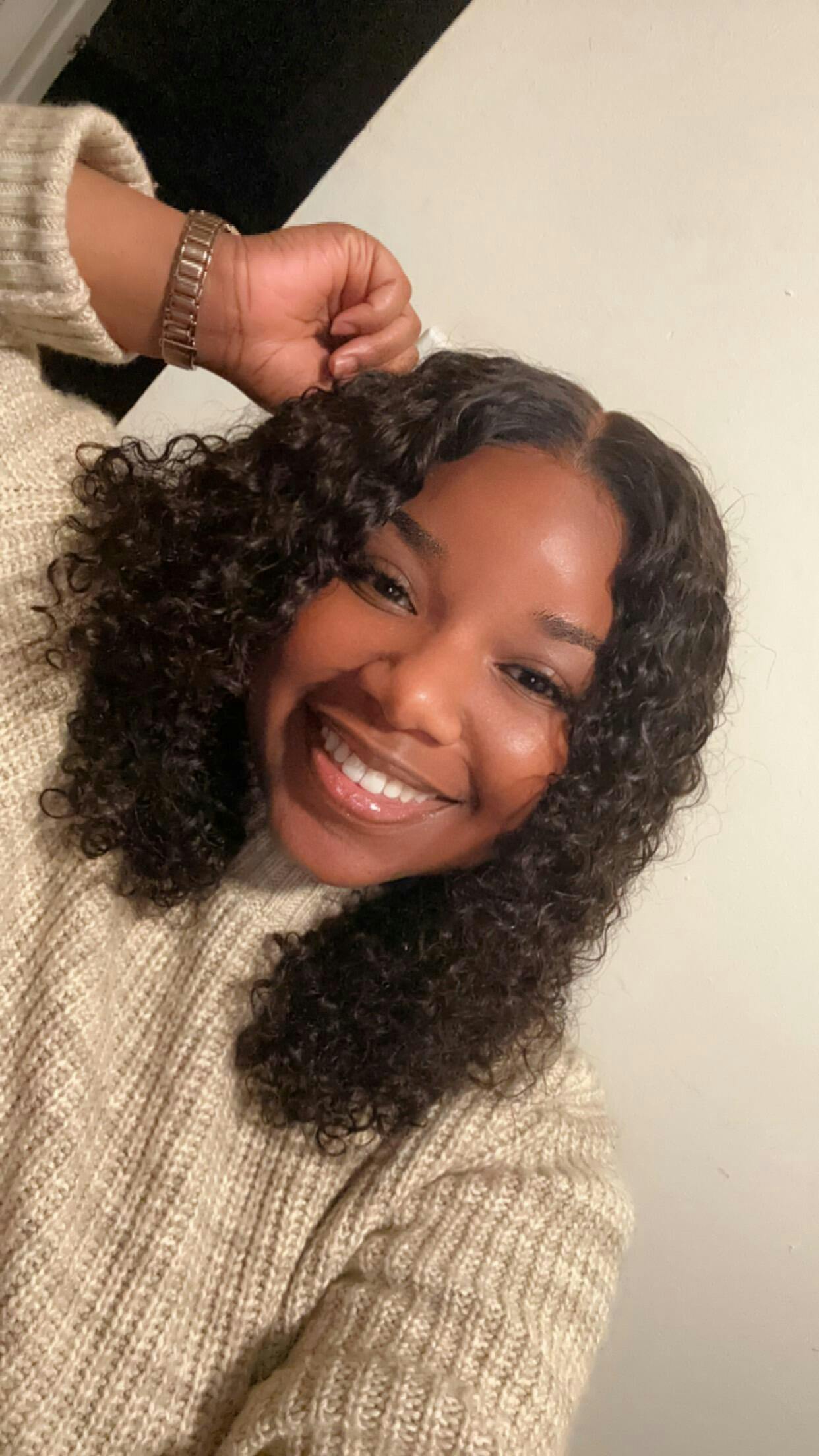 Fully customized with bleached knots and plucked hairline; Brooke can be styled in a middle or side part, with or without baby hair. Elastic band added in the back for glueless installs.