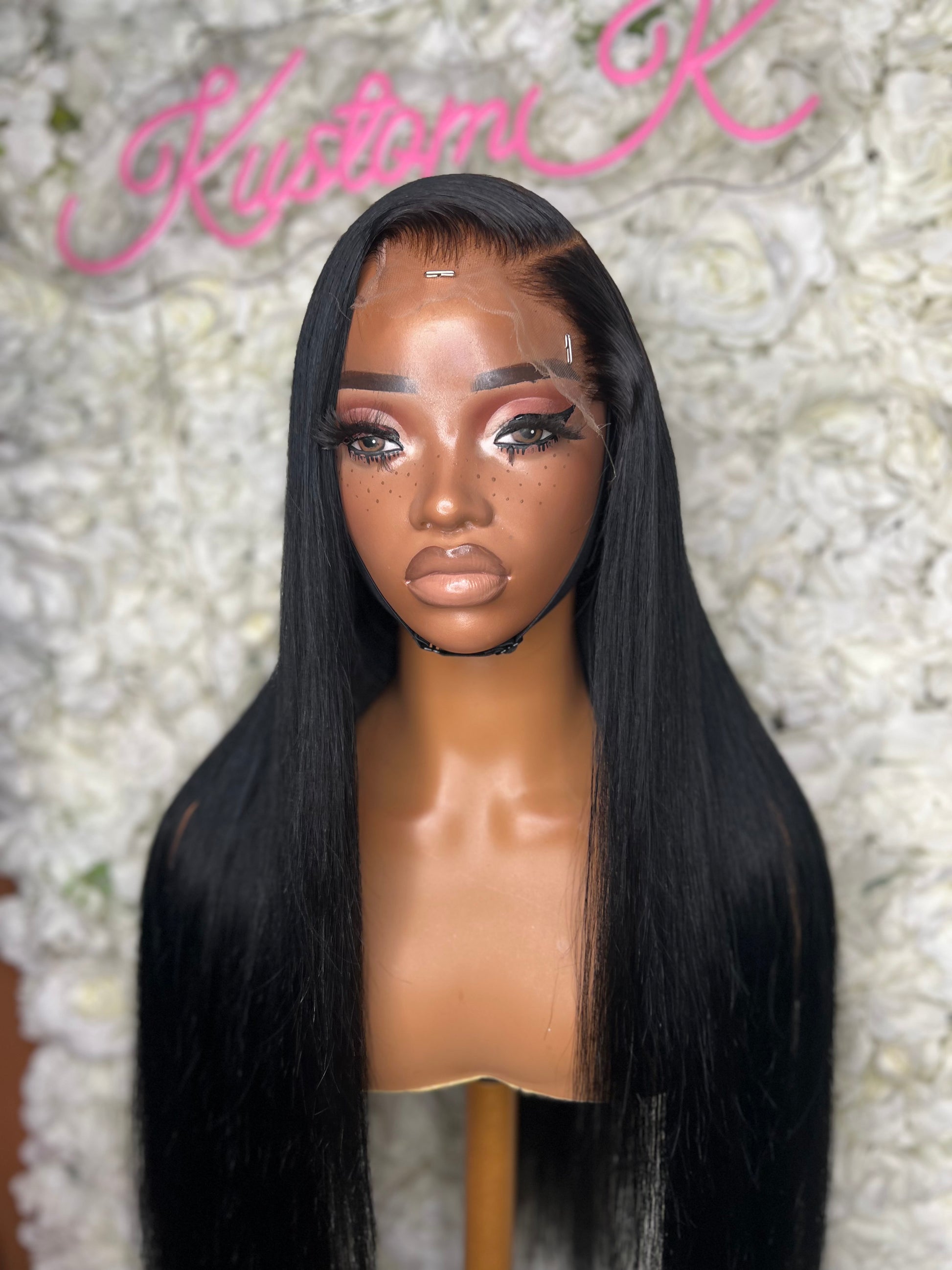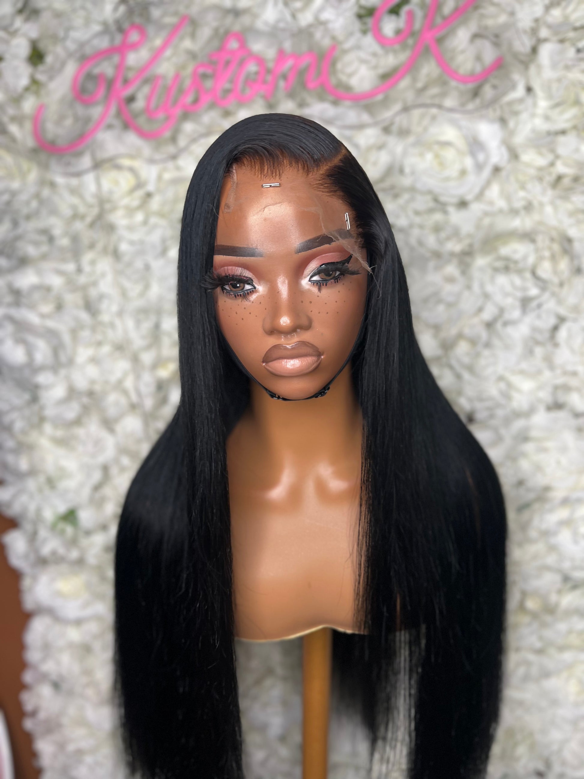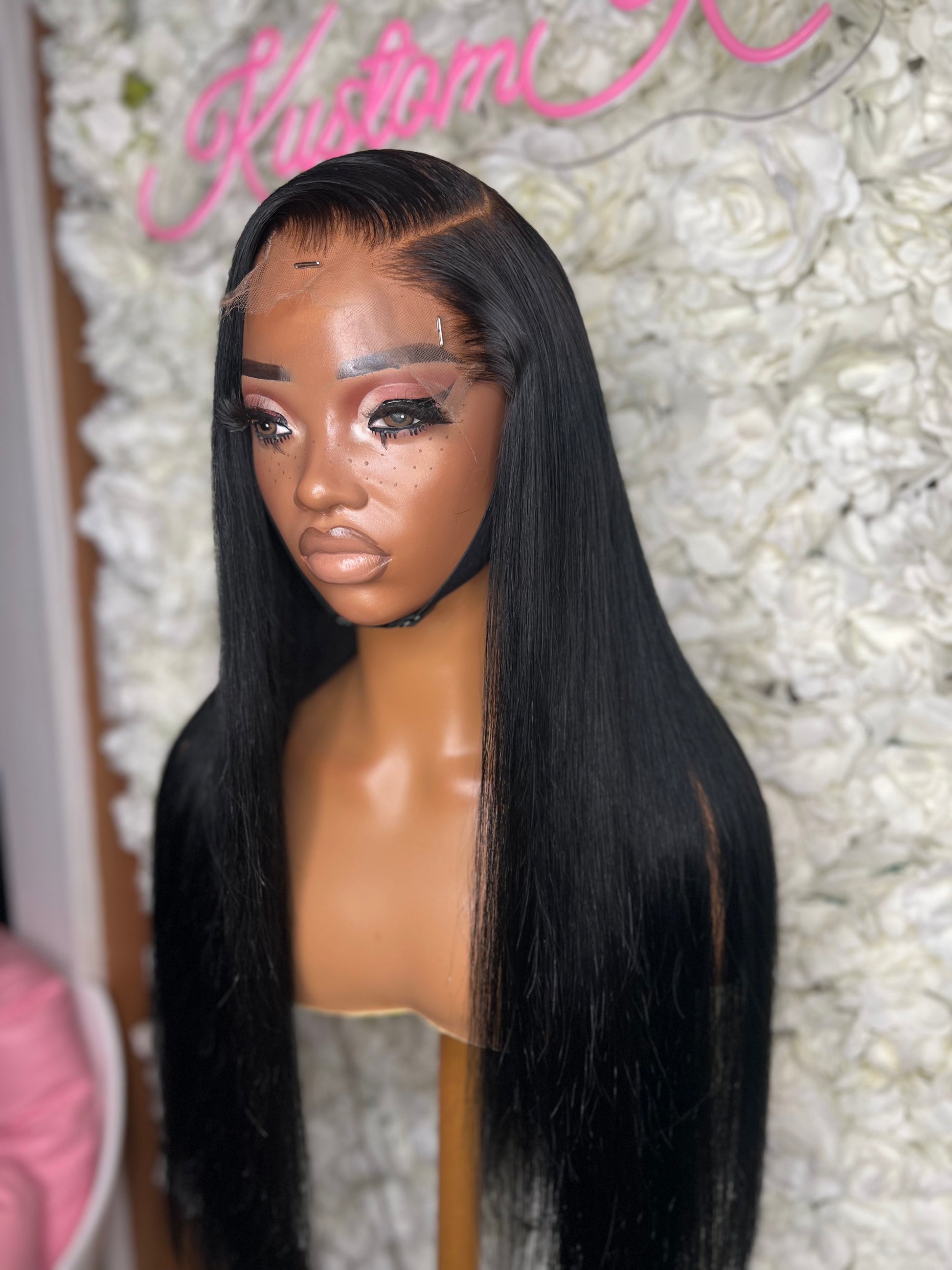Fully customized with bleached and plucked knots; Jordan is styled in a side part. The closure on this unit was sewn two inches to the left for a deep side part effect. Elastic band and drawstring added for glueless installs.