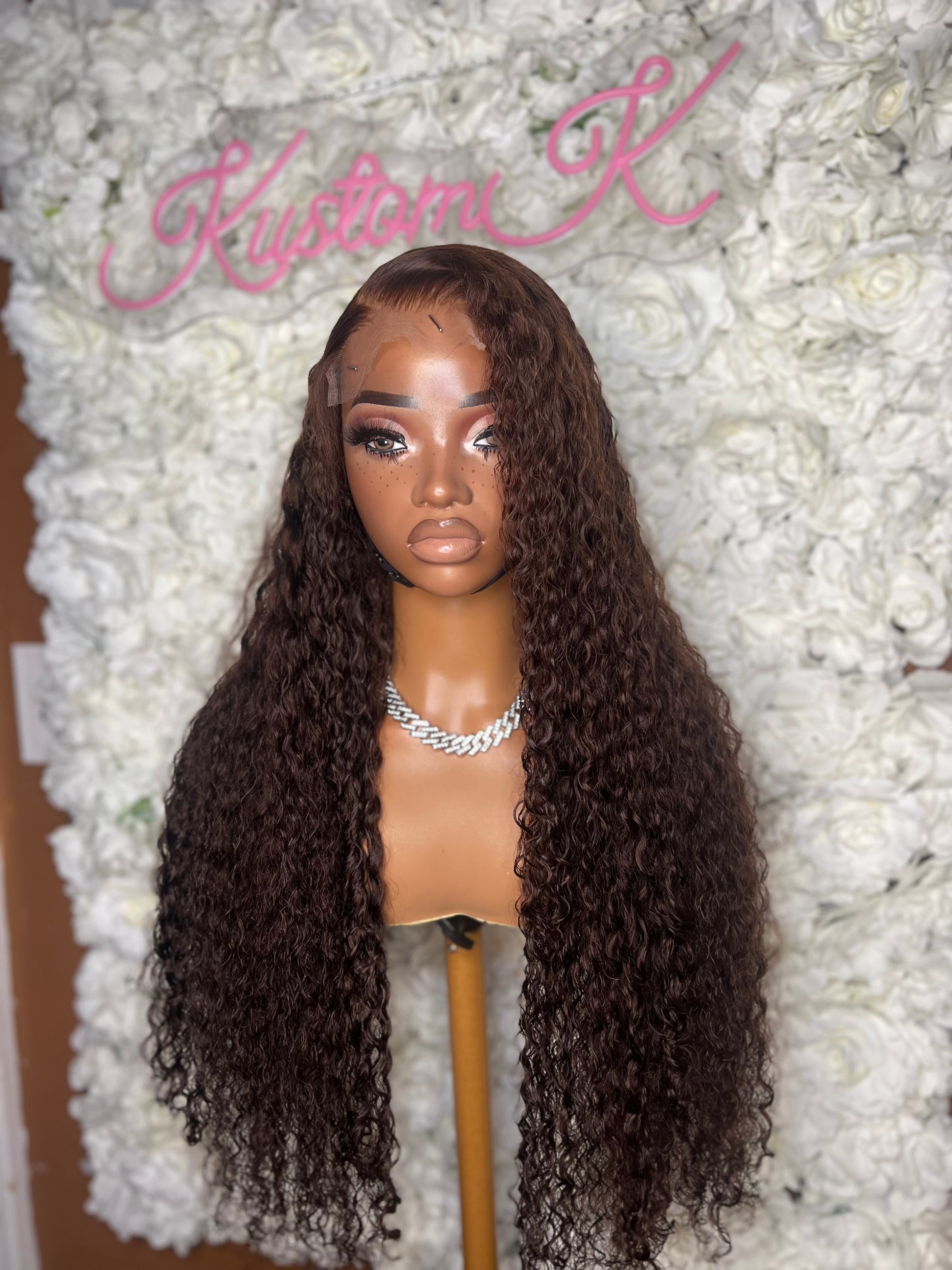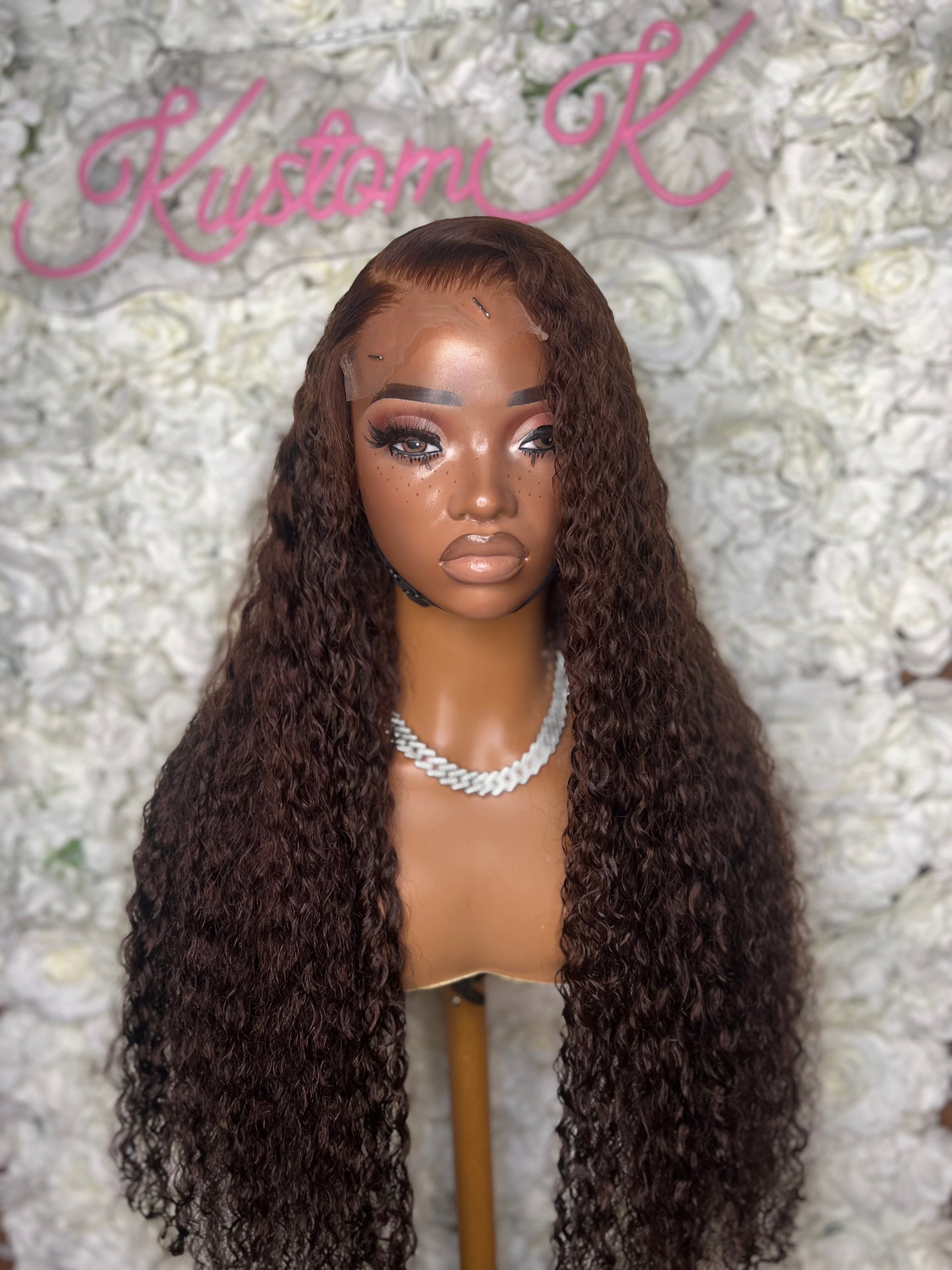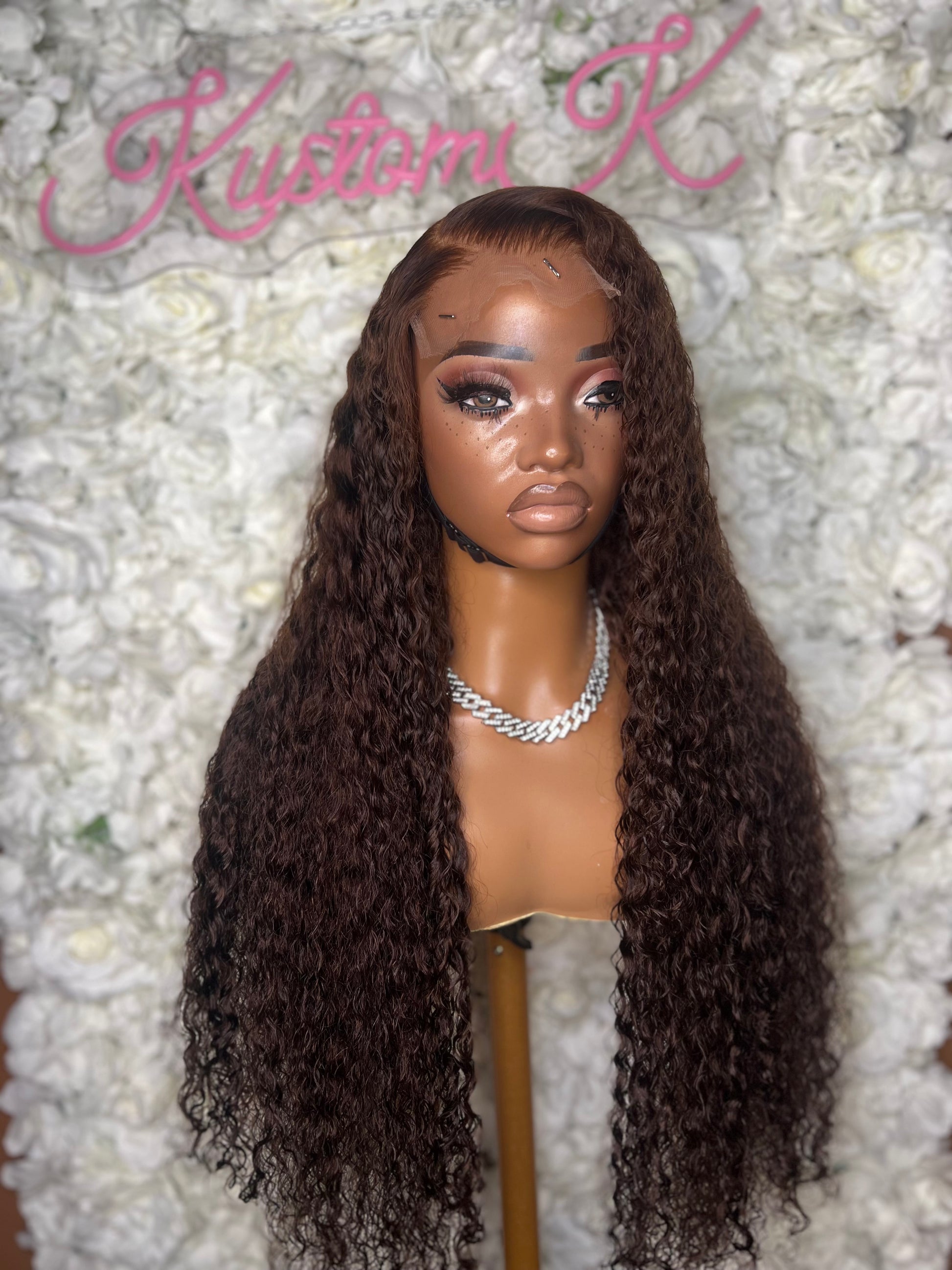 Fully customized with bleached knots and plucked hairline. Koko has been styled in a side part. Elastic band and drawstring added to the back for glueless installs.