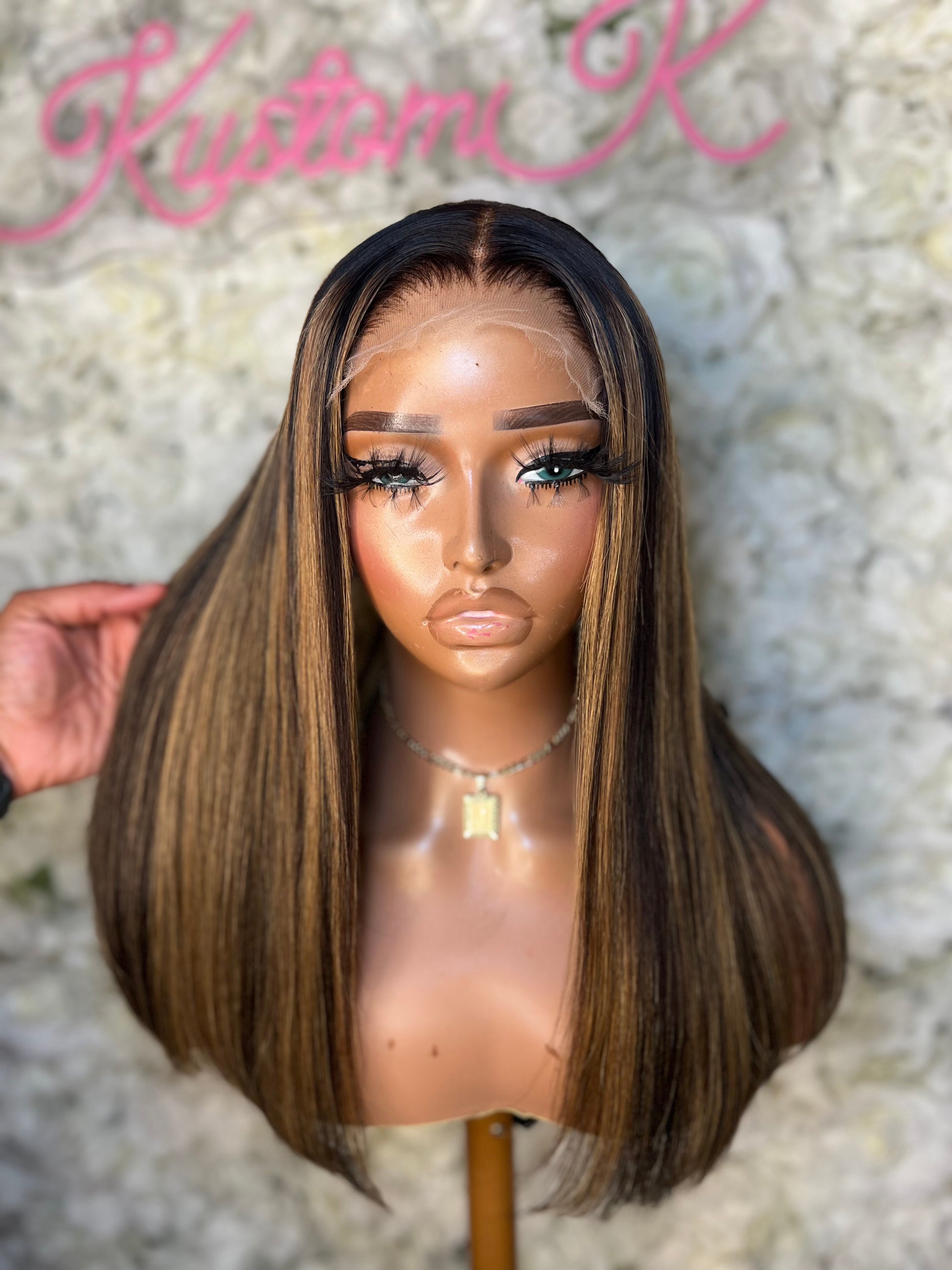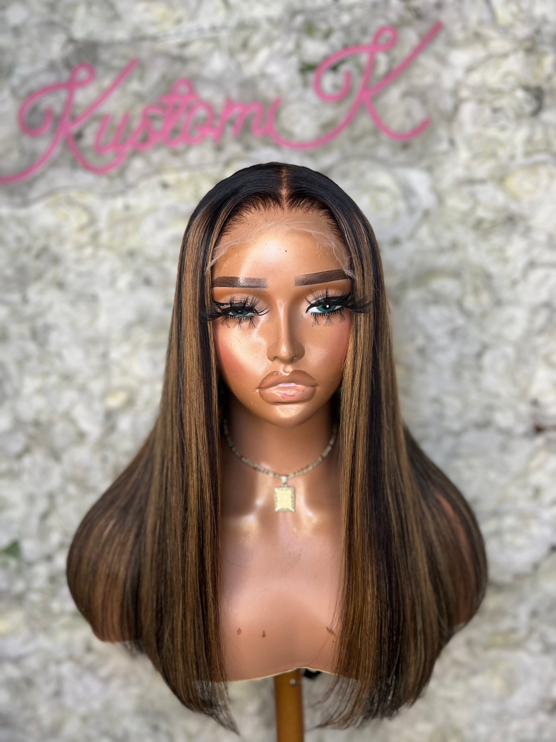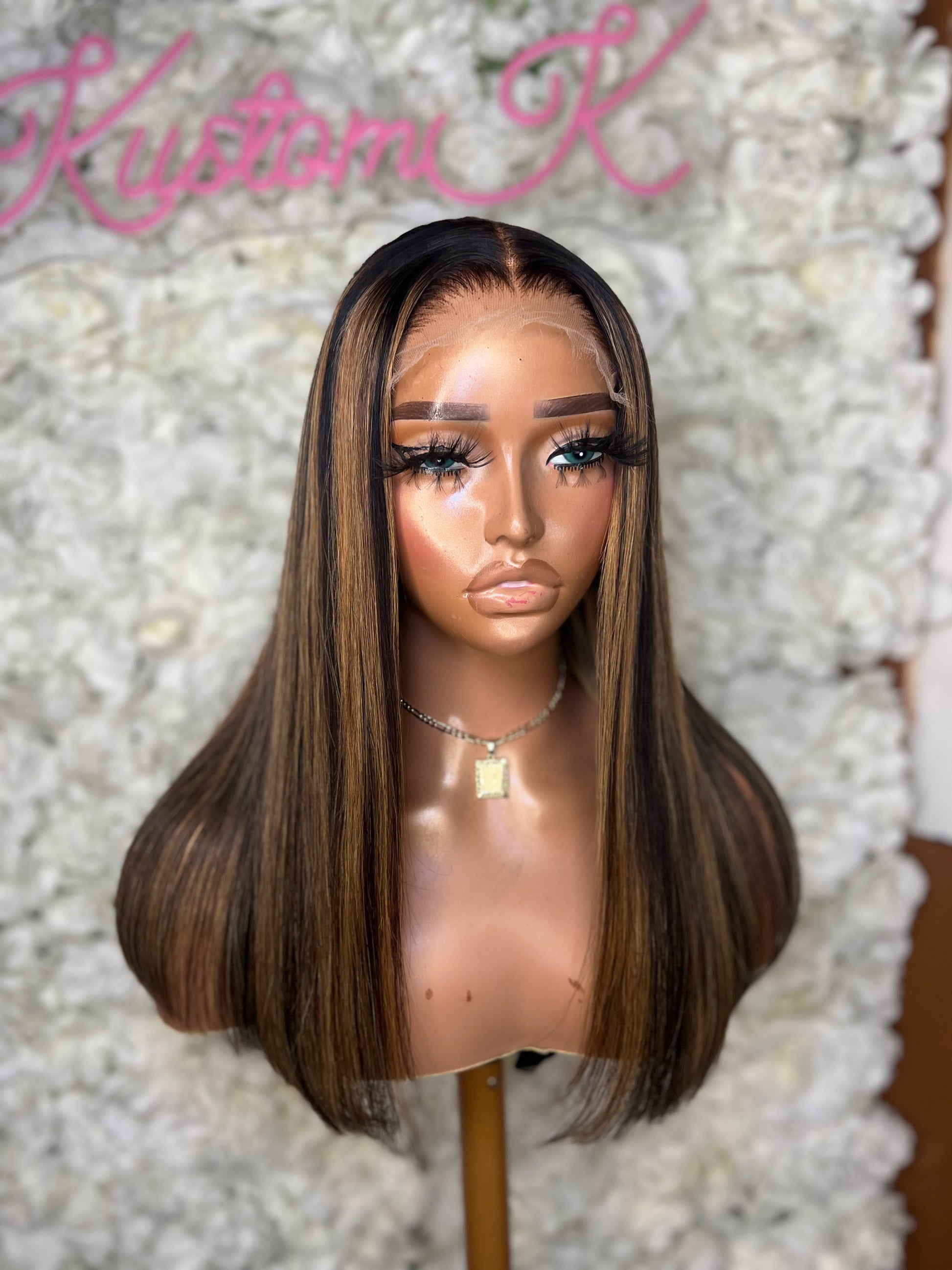 Fully customized with bleached knots and plucked hairline. Mallory has been styled in a middle part. Elastic band and drawstring added to the back for glueless installs.
