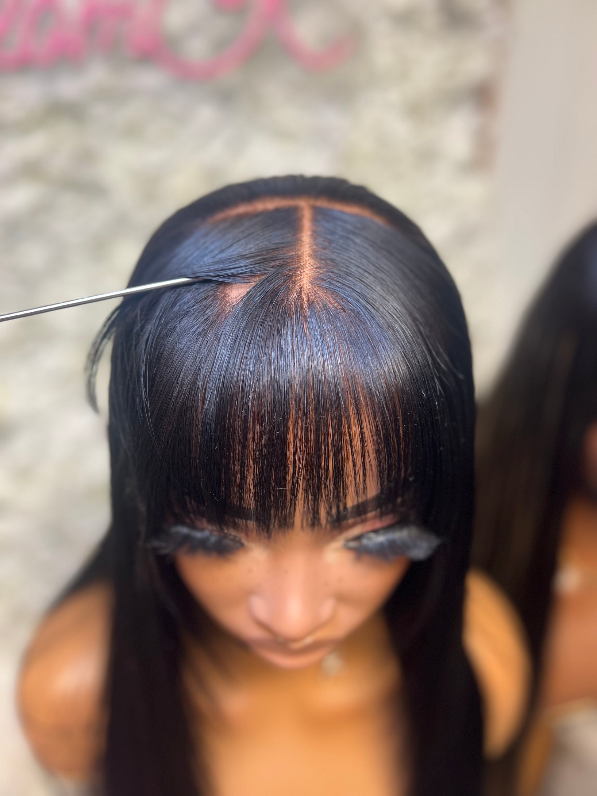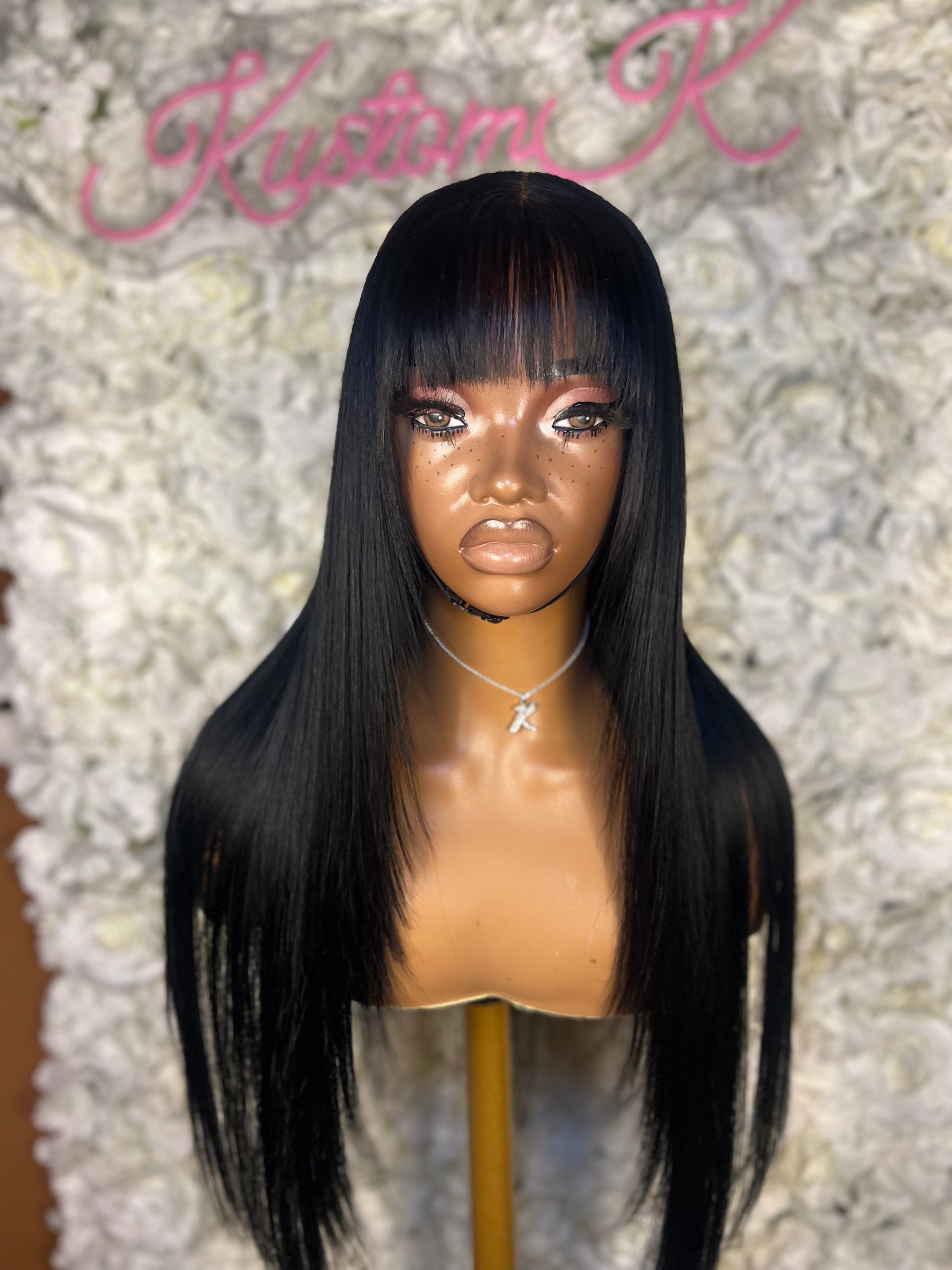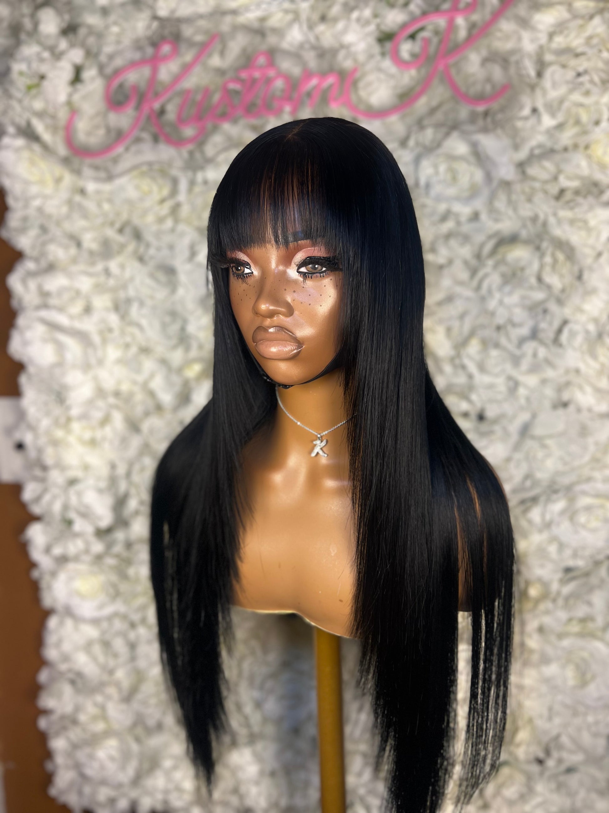 This refurbished unit has been fully customized, including bleached knots and a sleek bang style. It has only been worn twice and remains in good condition. The pre-cut lace makes installs quick and easy, though results may vary depending on your hairline.