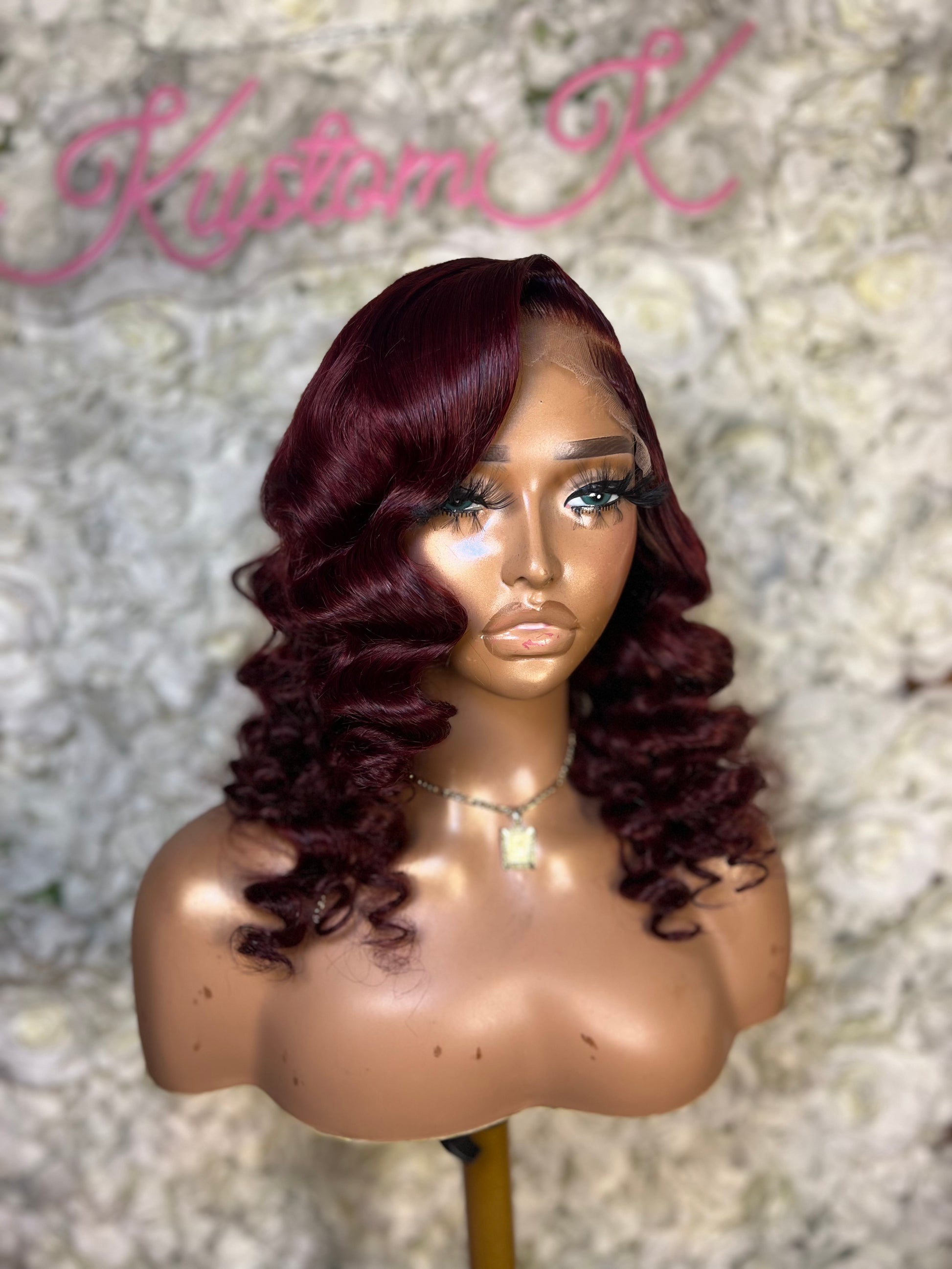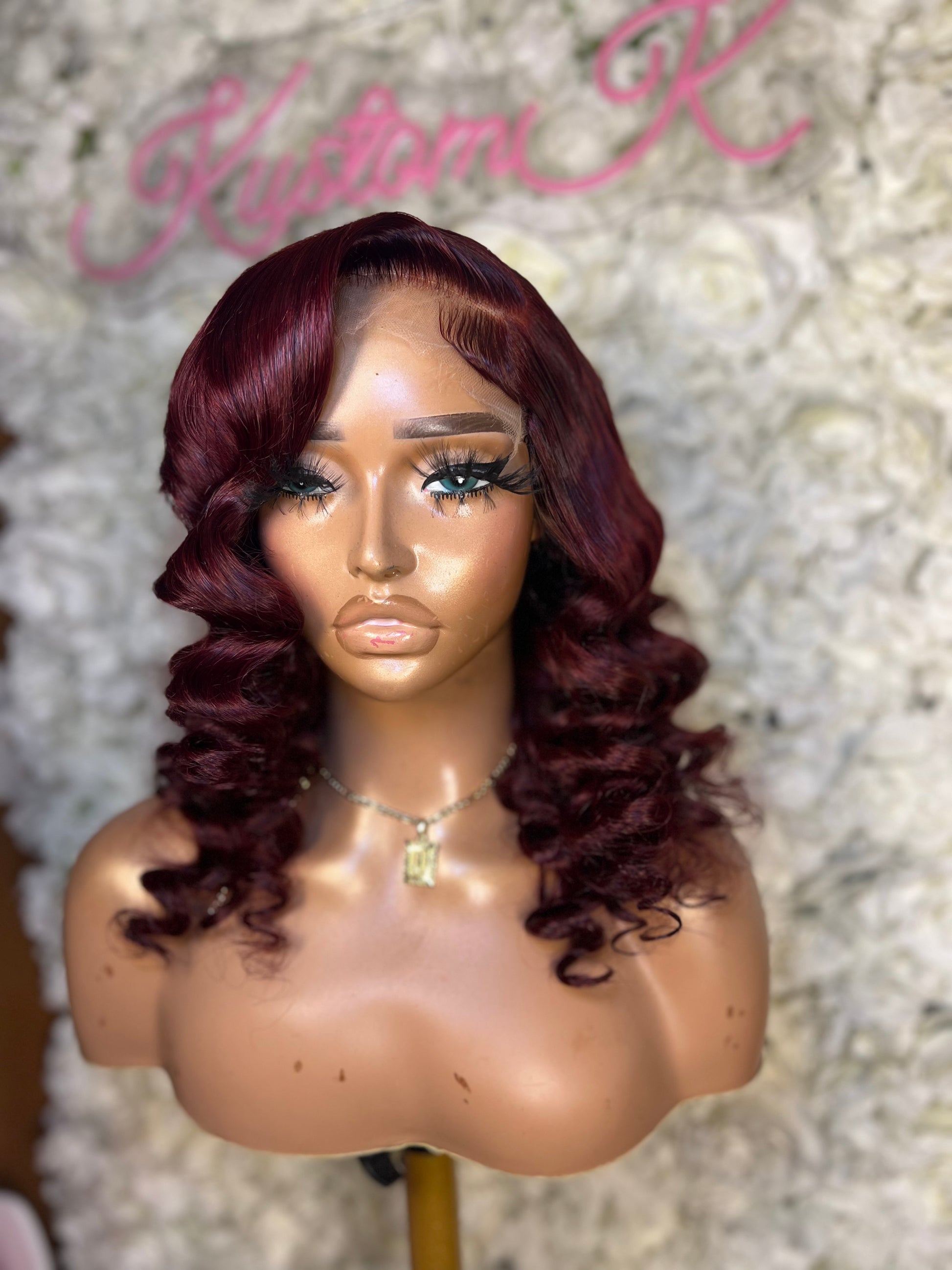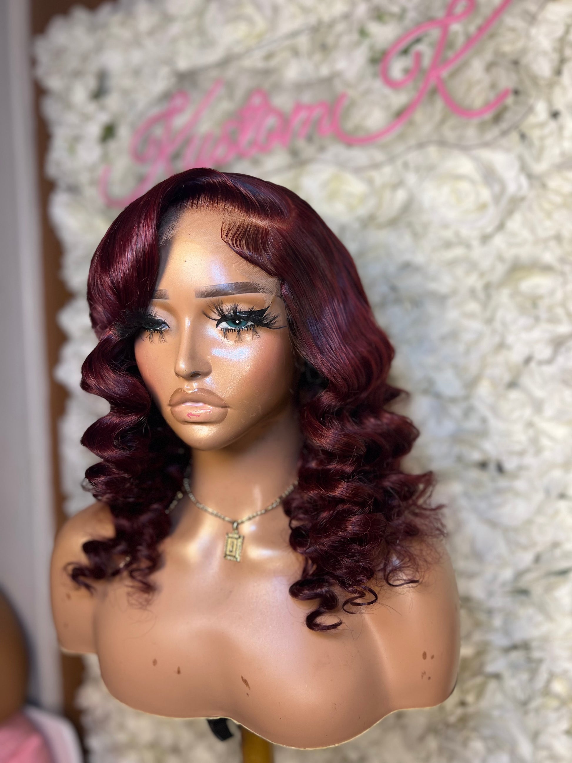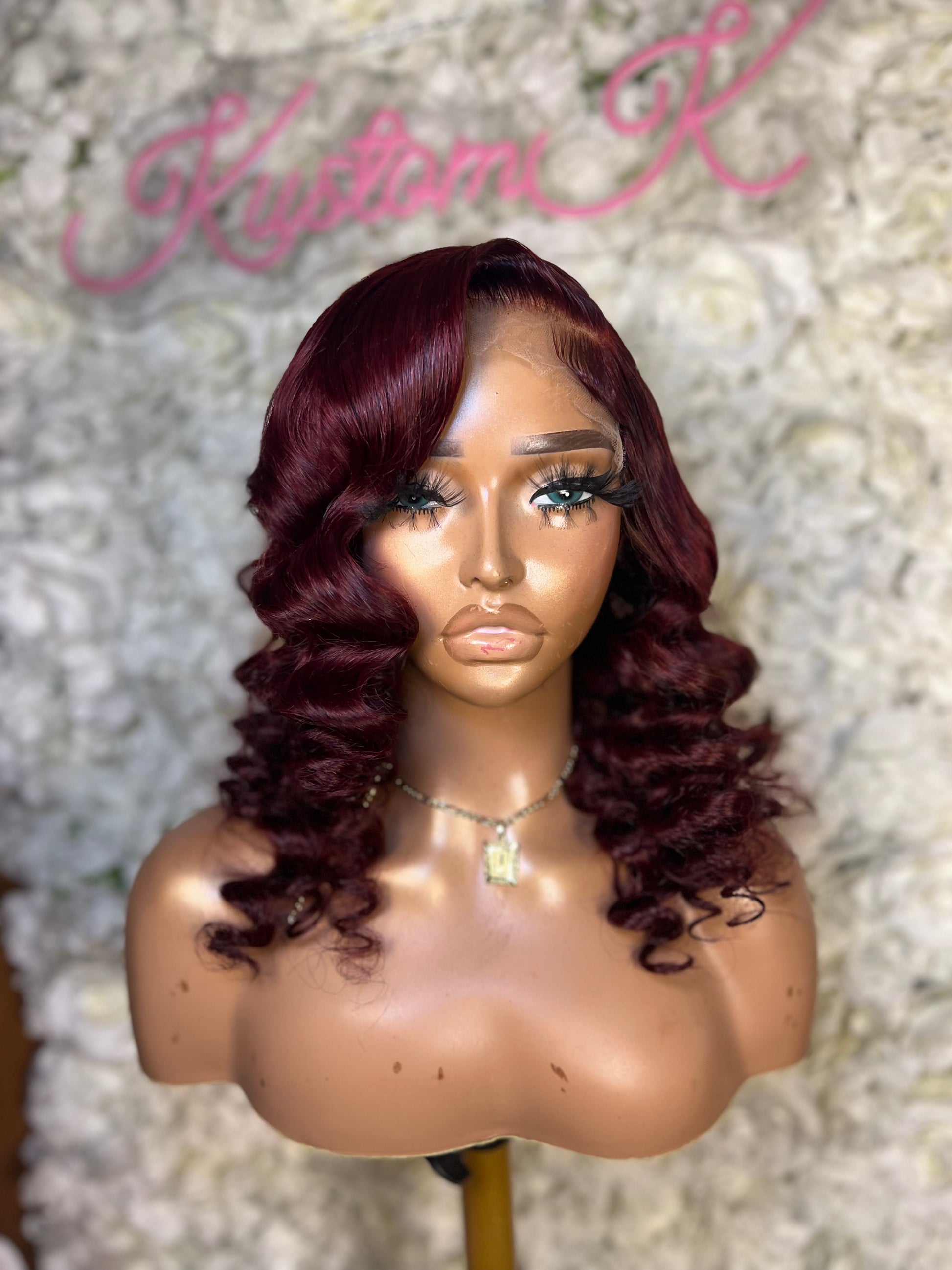 Fully customized with plucked hairline; Wanda has been styled in a side part with wand curls and baby hair. The closure on this unit was sewn 2 inches to the left for a deeper side part. Elastic band and drawstring in the back of the wig for the perfect glueless installs.